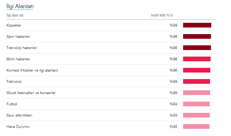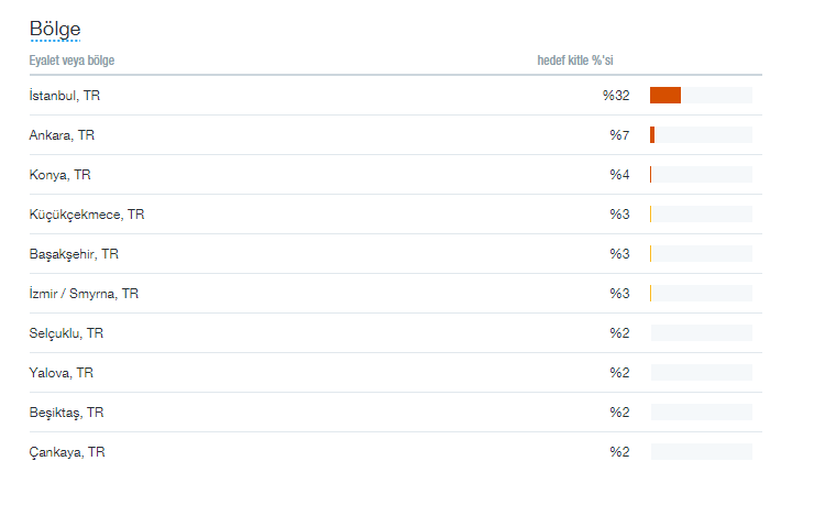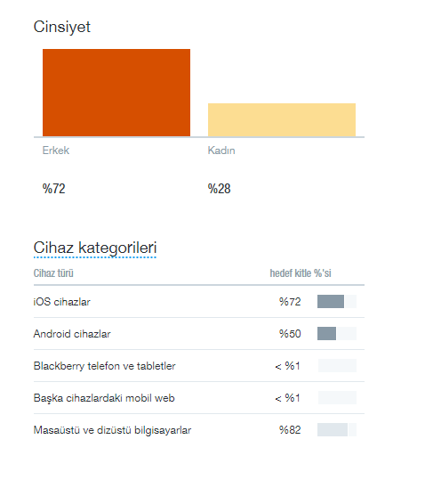 Tüm Twitter kullanıcı seçeneğinde: belirli ilgi alanları ve konumlara göz attığınız zaman Twitter size bu konuda işe yarayabilecek ortalama rakamlar sunar.